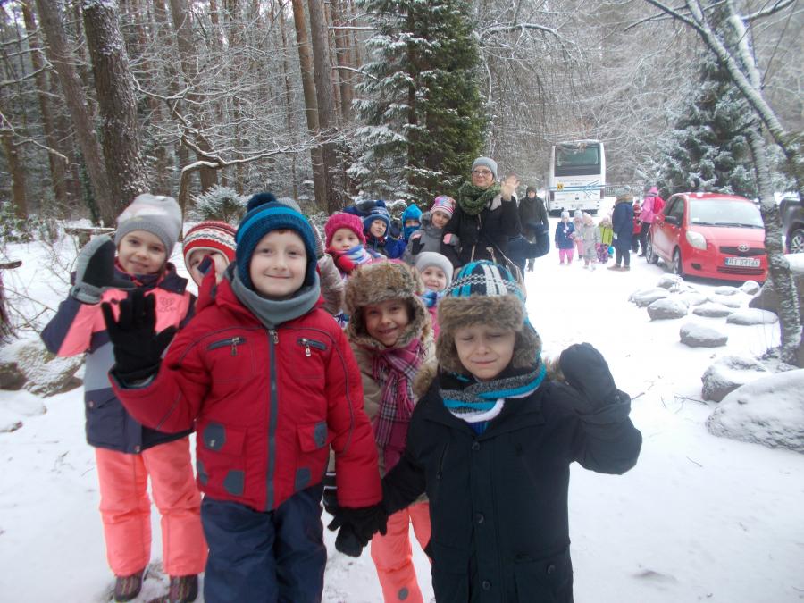 W piękny zimowy dzień po raz kolejny Smerfy pojechały do Arboretum realizując Metodę Projektu z edukacji przyrodniczo - leśnej ,,Leśne Przedszkolaki". Dzieci szukały i rozpoznawały tropy zwierząt znajdujące się na śniegu. Odbijały ślady zwierząt w masie solnej, wykonały pracę plastyczną odbijając ślady zwierząt za pomocą farby plakatowej. Szczęśliwe i pełne wrażeń wróciły do przedszkola.