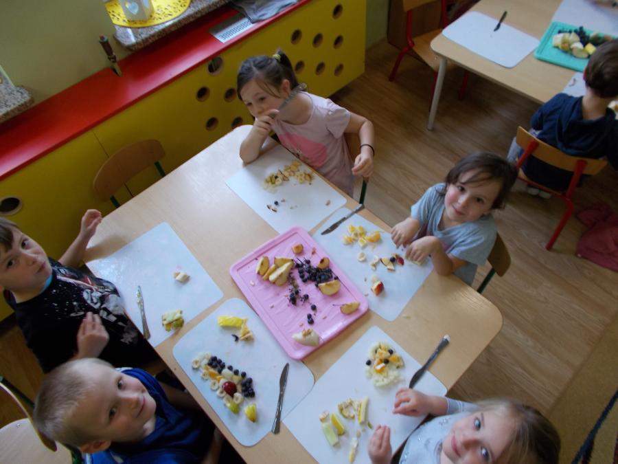 Elfy wykazały się twórczościa tworząc kompozycje ze swoich ulubionych owoców. Stworzone przez siebie prace z apetytem zjadły.