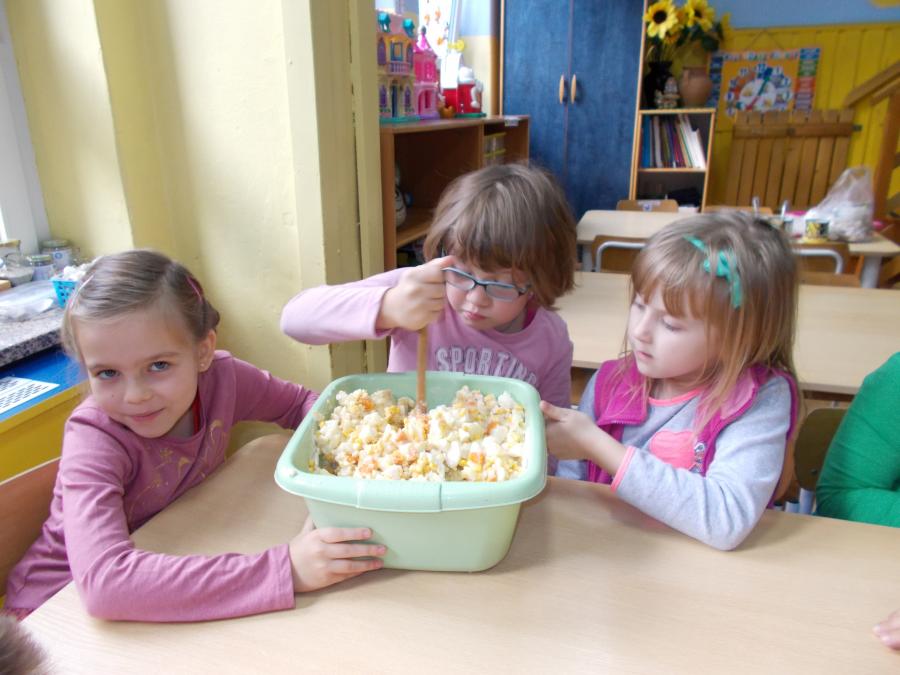 Sałatka jarzynowa w wykonaniu dzieci smakowała wyśmienicie.