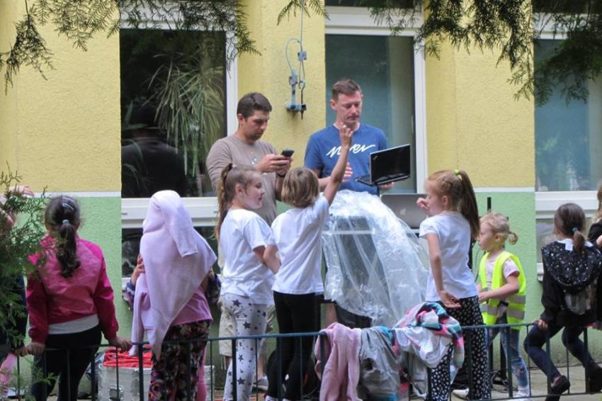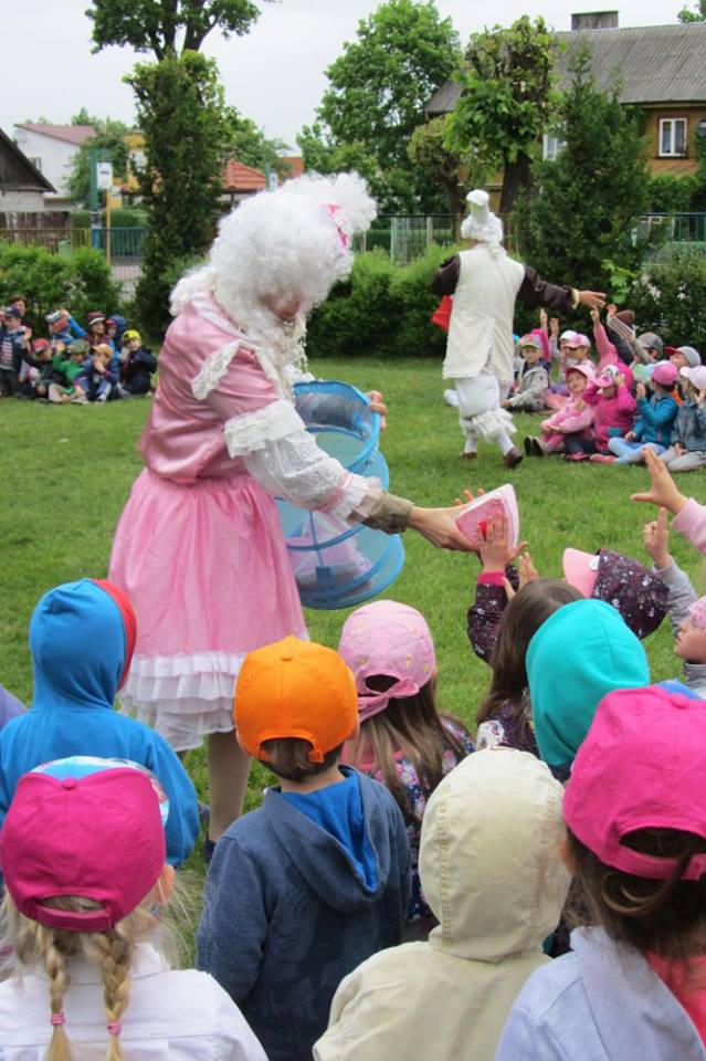 Czwartek rozpoczęliśmy zabawą plenerową prowadzoną przez aktorów teatru „ Pod Orzełkiem”. Na drugie śniadanie każde dziecko otrzymało babeczkę, która została uroczyście wniesiona z racą ,a personel odśpiewał sto lat. Przed południe zakończyło się zimną niespodzianką w postaci lodów, sponsorowane przez Radę Rodziców. O godzinie 12:00 w Domu Ludowym przedszkolaki obejrzały film animowany pt: „Sekretne życie zwierzaków domowych”