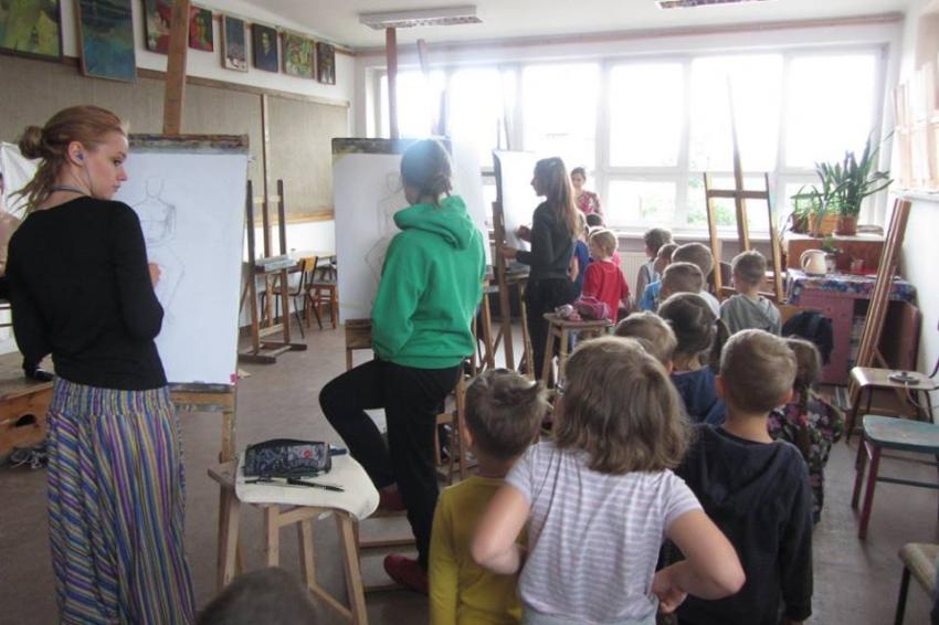 14.06.2017 udział grupy "Smerfy" w warsztatach plastycznych w pracowni grafiki prowadzonych przez panią Honoratę Zamostną