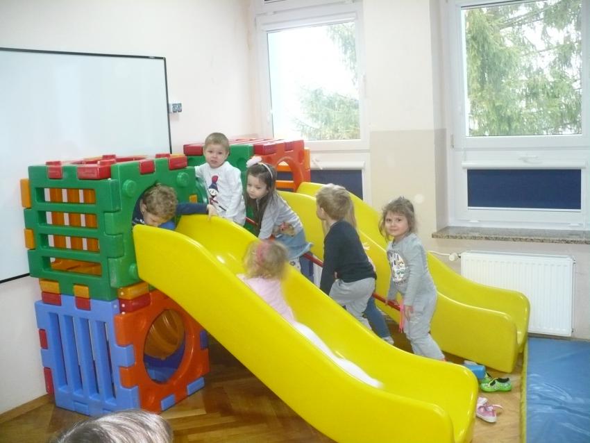 Cotygodniowe zajęcia gimnastyczne z p. Magdą Olifieruk jak kropelka po kropelce drążą w maluszkach zamiłowanie do sportu, w myśl zasady: czym skorupka za młodu nasiąknie, tym na starość trąci.