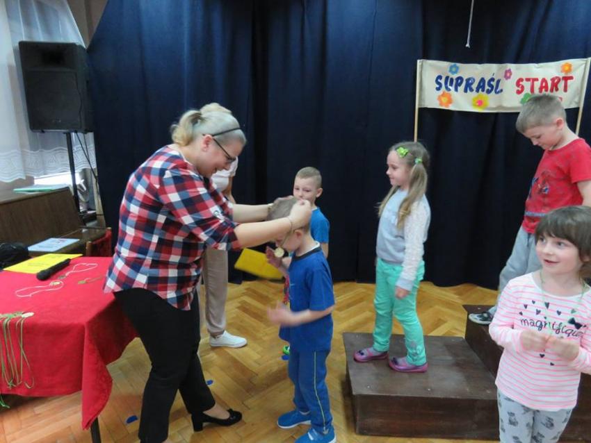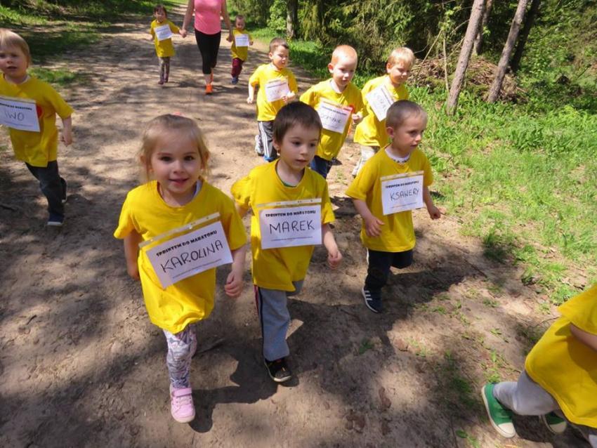 Nasze przedszkolaki wzięły udział w III Ogólnopolskim Maratonie Przedszkolaków „Sprintem do maratonu”. Grupy starsze miały do pokonania trasę 3km, młodsze 2km, a nasze najmłodsze przedszkolaki „Krasnoludki” 1km.Wszyscy biegacze otrzymali zasłużony medal oraz dyplom .