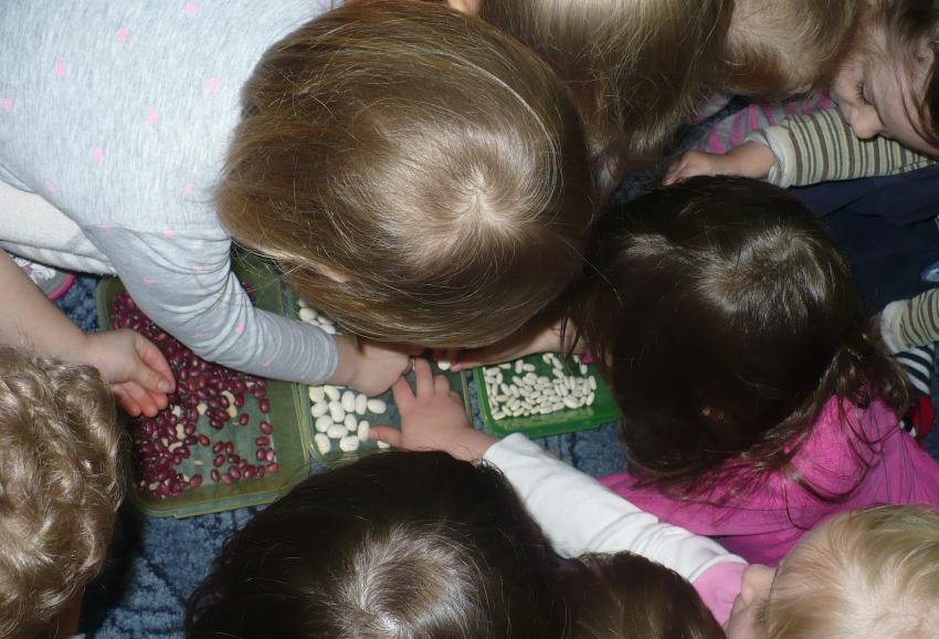 Krasnoludki, zainspirowanebajką o „Jasiu i czarodziejskich ziarnkach fasoli”, same przekonały się o niezwykłości tych nasion. Fasolki nadają się bowiem nie tylko do uprawy i jedzenia ale można wyczarować z nich instrumenty muzyczne. Zdumione swoimi zdolnościami Krasnoludki stworzyły wraz z dziećmi ze szkoły akompaniament do piosenki „Polka fasolka”.