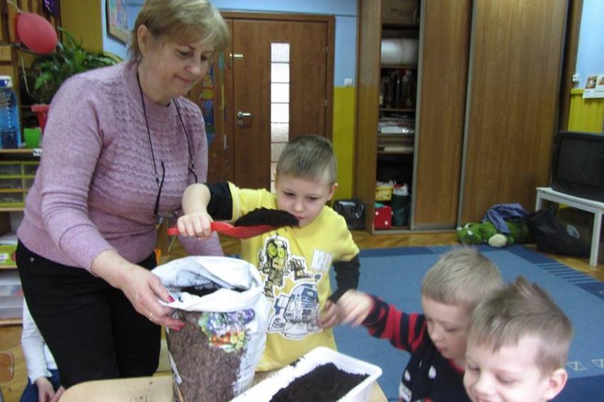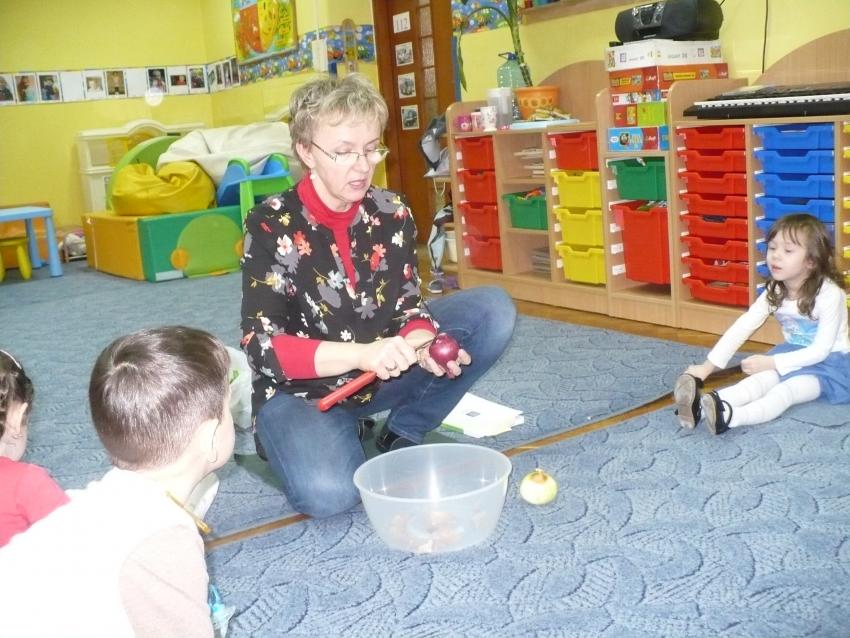 Cebulka – bohaterka dziecięcej piosenki zachęciła maluszki do eksperymentów przyrodniczych. Krasnoludki założyły własną uprawę szczypioru, rzeżuchy, kiełków rzodkiewki i fasoli oraz przekonały się, że z cebuli wyrasta szczypior a nie pomidor (jak to wcześniej twiedziły). Zaobserwowały też, że nasiona w szklarni wcześniej kiełkują, a rośliny szybciej rosną. Przy okazji zabaw badawczych dowiedziały się, co znaczy określenie – ubrać się na cebulkę.