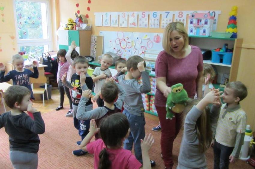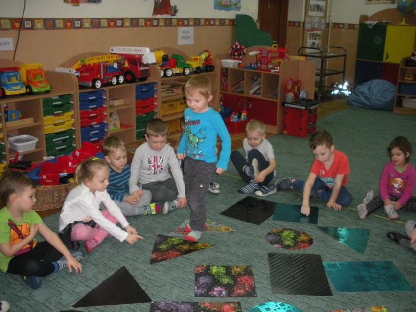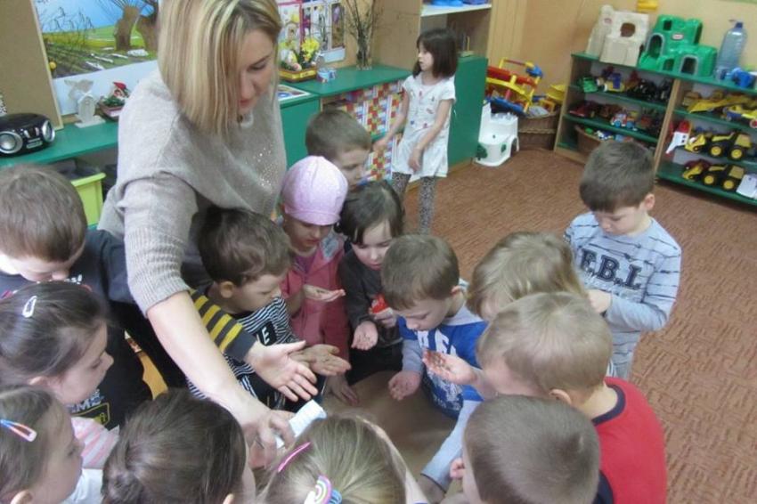 Krasnoludki wiedzą już, że zimą koniecznie trzeba dokarmiać ptaszki - wtedy wiosną podziękują nam pięknym śpiewem. Wiedzą też jakie są ulubione przysmaki wróbelków, sikorek i gili. Przy tej okazji utrwaliły też nazwy figur geometrycznych.