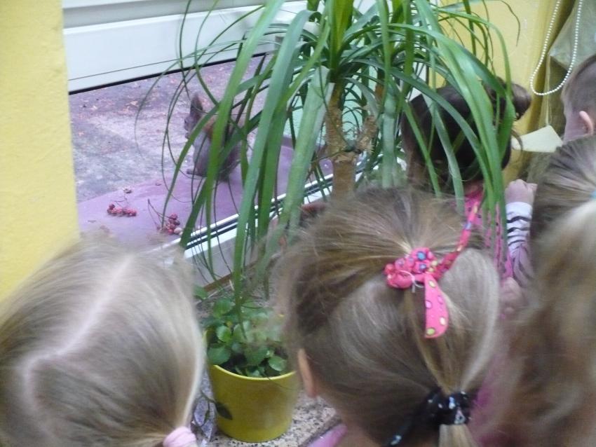 Jak co rano do okna Krsanoludków zagląda miła ruda sąsiadeczka i pozwala podziwiać swoją urodę oraz zwinność w poruszaniu się i łupaniu orzeszków.
