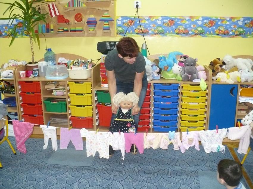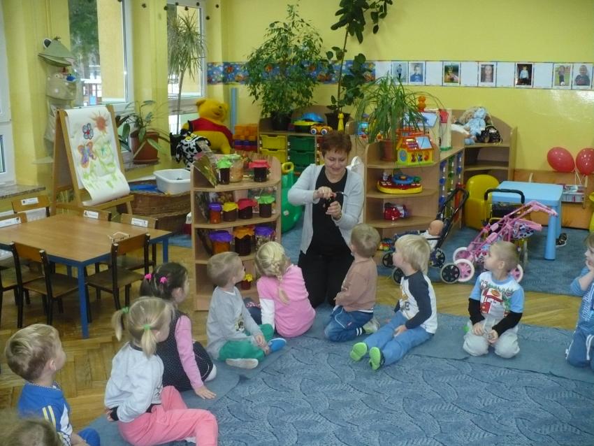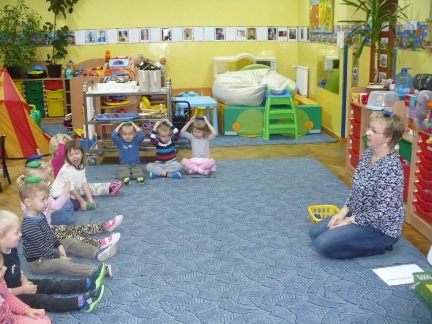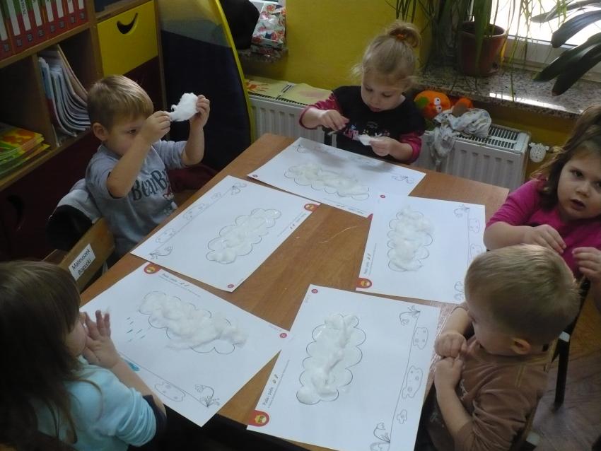 Krasnoludki dowiedziały się, jak powstaje deszcz. Uczyły się, jak prawidłowo posługiwać się parasolem i na sucho bawiły się deszczem, chodziły po kałużach, naśladowały rytm spadających kropelek.