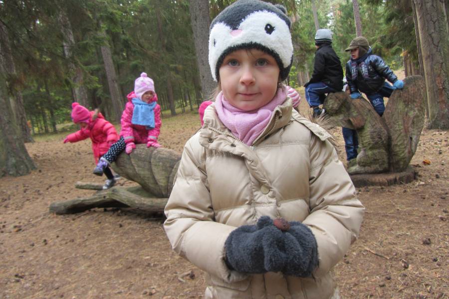 Najstarsza grupa przedszkolaków wybrała się na poszukiwanie jesieni. Mnóstwo skarbów udało im się zebrać! Wykorzystali je wszystkie po powrocie do przedszkola!