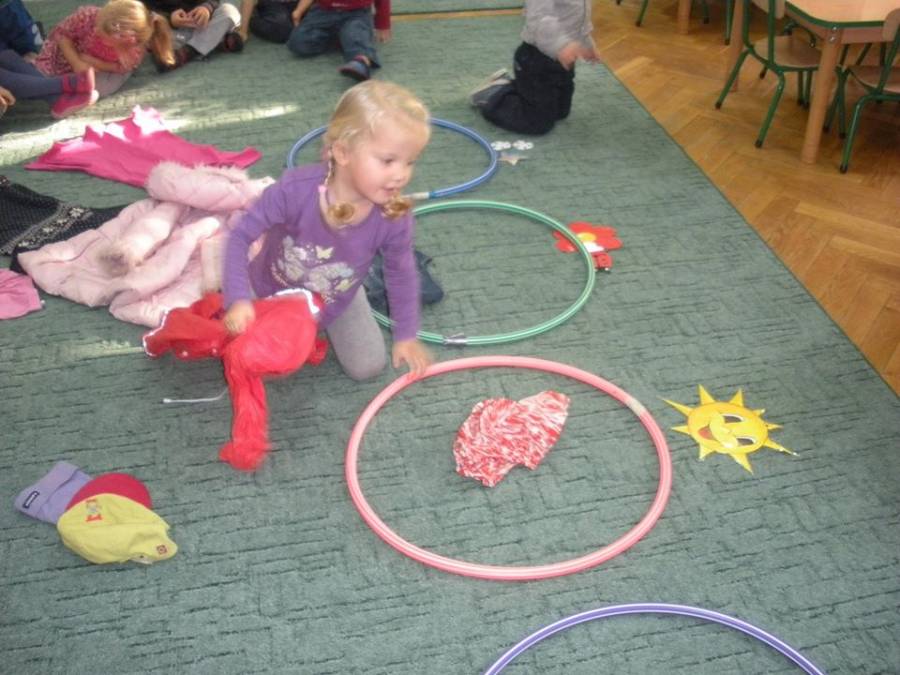 Muminki uczyły się w przedszkolu - jak dzieci powinny być ubrane stosownie do pory roku! A kiedy wiadomości zostały opanowane wesoło bawiły się na naszym przedszkolnym placu zabaw.