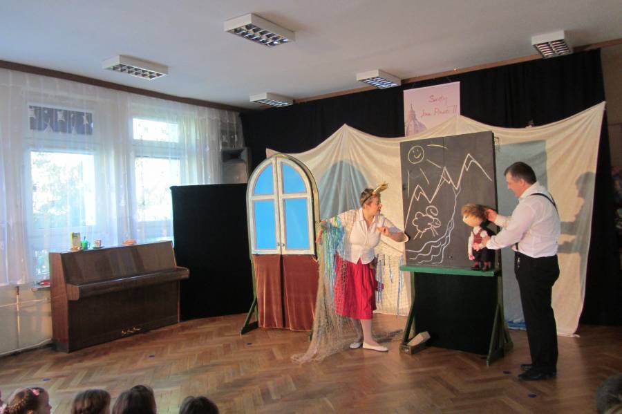 Dzieci wykonały, a pracownicy przedszkola postanowili wysłać do Watykanu na ręce Papieża Franciszka księgę upamiętniającą naszego patrona - Papieża Jana Pawła II. Dzieci przygotowały przepiękne ilustracje, na których widać naszego patrona przemierzającego świat w poszukiwaniu wielu wartości. W odpowiedzi otrzymaliśmy list od Papieża Franciszka, w którym to Biskup Rzymu otacza Bożym Błogosławieństwem całą społeczność naszego przedszkola. Pierwszoklasiści przybyli do przedszkola, aby im podziękować i wręczyć podziękowania za wykonane ilustracje. Pani Renata i Aneta - nauczycielki religii w szkole podstawowej przygotowały prezentację dotyczącą osoby Jana Pawła II, a pani Dyrektor wręczyła dyplomy naszym absolwentom.