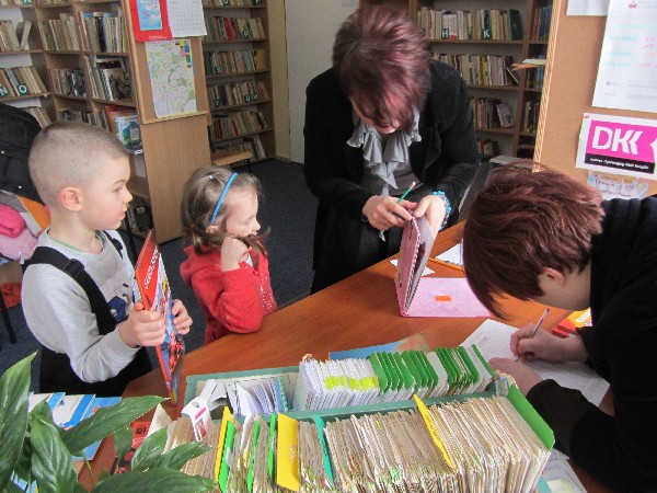 Dzieci z naszego przedszkola z przyjemnością odwiedzają Bibliotekę. Tematem pierwszych spotkań jest zapoznanie z biblioteką oraz regułami zachowania sie w tak ''magicznym '' miejscu. Dzieci oglądają działy z różnymi książkami, katalogi biblioteczne, zapoznają się ze sposobami odnalezienia potrzebnej książki wśród tysięcy innych. Przedszkolaki wykonują również ilustracje do ulubionych bajek, rozwiązują zagadki, biorą udział w zajęciach zorganizowanych przez studentów. Każde wyjście do biblioteki daje dziecku możliwość obejrzenia wielu książek oraz wypożyczanie ich do domu – gdzie są czytane wspólnie z rodzeństwem, rodzicami.