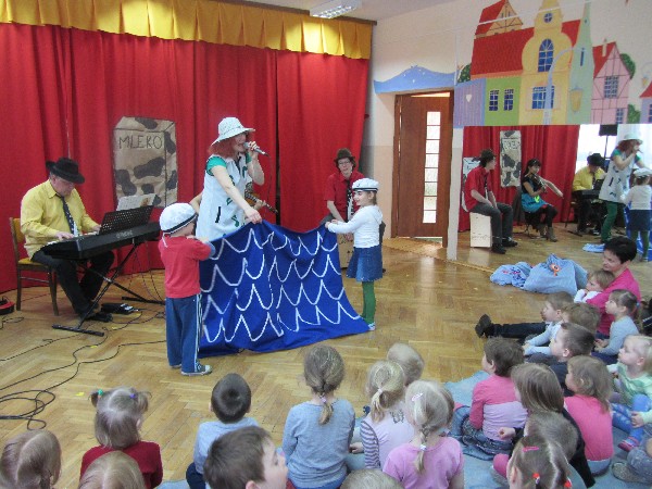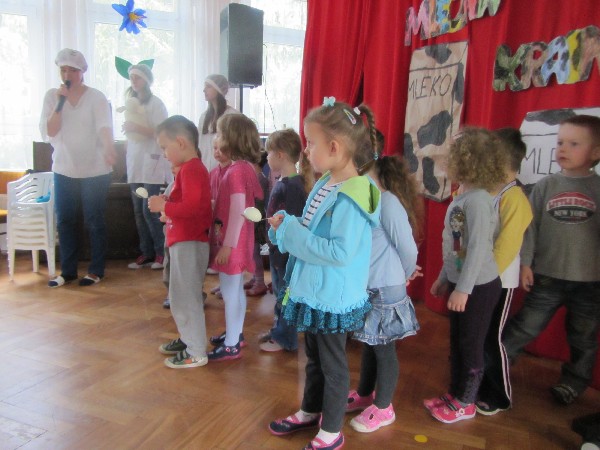 W ramach Akademii Zdrowego Przedszkolaka dzieci dnia 24.04.2013 roku „wyruszyły” w Podróż do Mlecznej Krainy. Na podstawie Piramidy Żywienia ustaliły co to jest mleko i produkty mleczne oraz na którym piętrze piramidy się znajdują. Za pomocą prezentacji Power Point dzieci dowiedziały się skąd się bierze mleko, kefir, jogurt, maślanka. Dzięki bajce o „ Zwierzątkach ze Zdrowego Zakątka” dzieci zostały zaproszone do „ Mlecznej Krainy”. Kolorowały sylwety bohaterów bajki. Podczas zabawy w wielkiego budowniczego dowiedziały się jaką rolę pełni wapń w naszym organizmie. Na koniec imprezy przedszkolaki otrzymały mleko smakowego, które wszystkim bardzo smakowało.