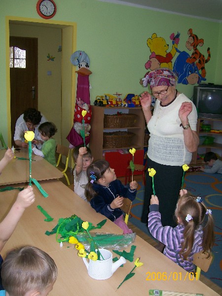 14 maja grupę „Elfy” odwiedziła pani Danusia i Pani Zina, wolontariuszki z CKiR w Supraślu. „Super Babcie”, bo tak nazywa się ich grupa, pokazały Elfikom, jak zrobić kwiaty z bibuły na Święto Mamy… Świetnie bawiły się one, jak i dzieciaki, co widać na zdjęciach… Super Babcie zostały poproszone o kolejne odwiedziny.